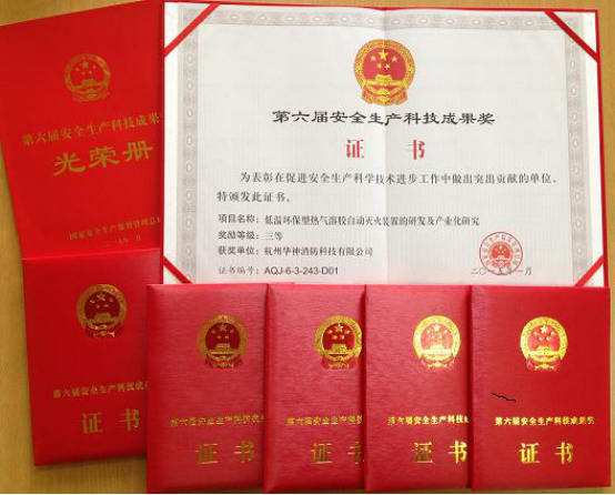 近日,國(guó)家安全監(jiān)管總局《關(guān)于表彰第六屆安全生產(chǎn)科技成果獎(jiǎng)的決定》(安監(jiān)總科技〔2015〕8號(hào))公布,杭州華神消防科技有限公司研發(fā)的“低溫環(huán)保型熱氣溶膠自動(dòng)滅火裝置的研發(fā)及產(chǎn)業(yè)化研究”項(xiàng)目獲得第六屆安全生產(chǎn)科技成果三等獎(jiǎng)。這次獲獎(jiǎng),是在省、市、區(qū)各級(jí)安監(jiān)部門的高度重視和大力推薦下,通過華神公司科研人員刻苦攻關(guān)的成果。