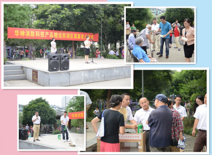 在“美麗西湖 幸福養老”的后續活動中,華神消防再次走入社區,走入獨居老人家庭,為老人排查火險隱患,宣傳消防知識。7月8日上午,華神消防與西湖區民政局在古苑公園舉行了華神消防科技產品捐贈儀式,向西湖區孤寡老人捐贈300余套家庭廚房智能滅火系統全套裝置設備,總價值20余萬元。西湖區副區長沈陽紅、區政協副主席張文陽、區民政局局長錢寶華、區民政局副局長朱慶豐等參加了儀式。