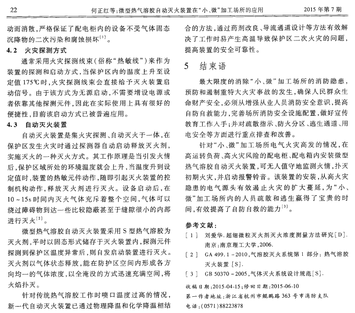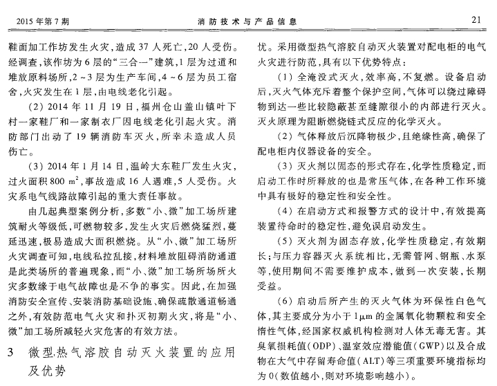 微型熱氣溶膠自動滅火裝置在“小、微”加工場所的應用
