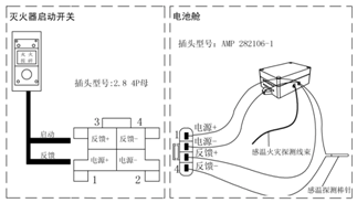當任一保護區發生火險時,通過設定好溫度閾值的火災探測針進行溫度探測,當溫度升至設定值(普遍設定為130℃)時,輸出火險報警信號,駕駛員操作盤上的模塊發出聲光報警信號,當駕駛員人為判斷發生火險時,可通過模塊按鈕手動啟動滅火裝置進行滅火。在無人值守或無法手動啟動滅火裝置時,當溫度持續升溫至±175℃時,火災感溫探測線束會自動(無源)啟動滅火裝置,實現保護區滅火。