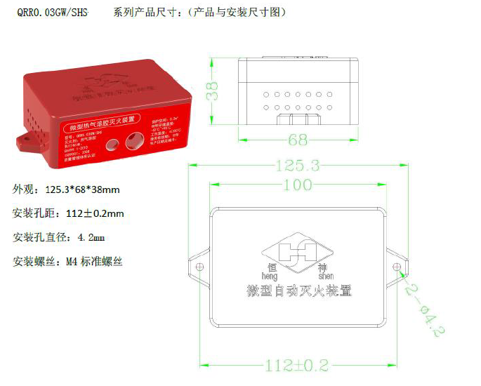 恒神微型熱氣溶膠滅火裝置是由引發器(電引發器/火災探測線束)、熱氣溶膠發生劑和發生裝置、反饋元件及冷卻外殼等部件組成,無壓力容器、壓力閥等氣動元件,具有效期長,免維護,可靠性高的特點。